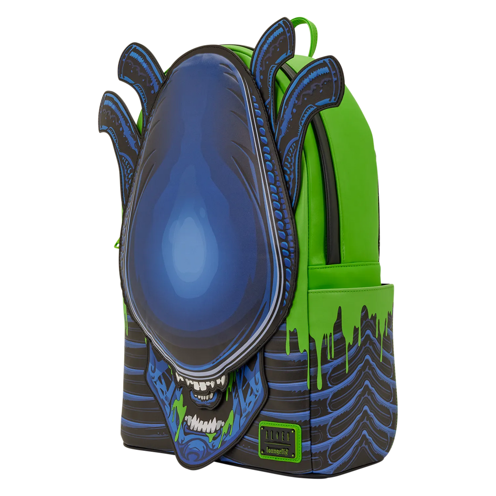 This full-size backpack is here for the Alien fans that want to rock a statement bag featuring our favourite Xenomorph! The alien comes to life in applique detail over the front of the bag. You’ll even find that its interior mouth extends! You’ll find green slime “”splashed”” over the rest of the bag, and it glows in the dark!